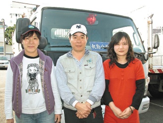 桃园大溪镇公所清洁队司机吕文正(中)与队员蓝美满(右)、李惠娟,拆解回收的废家具时,发现暗柜中藏有百万名表和钻戒。图片来源:联合报
