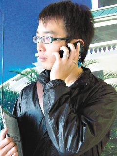台中县亚洲大学生洪任贤的手机号码在偶像剧中出现后几被打爆,电话接不完。来源:台湾《联合报》