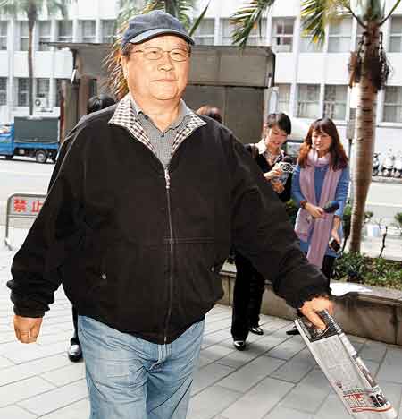 台特侦组侦办秃鹰联手炒作股票案29日传讯罗福助,应讯前罗福助前往台北地检署控告台湾《苹果日报》妨害名誉并求偿10亿。图片来源:台湾《中国时报》