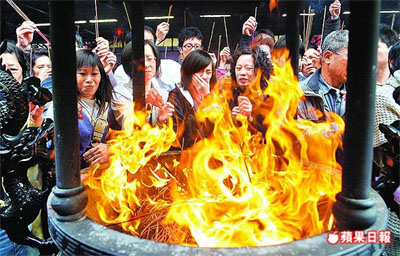 台北市武昌街的城隍庙昨发放2000份50元(新台币 下同)福袋,清晨5时就有民众排队,上午10时开始发放,半小时内便被索光。台北市行天宫昨则涌入15000人参拜,人潮排到庙外,周边交通动弹不得。