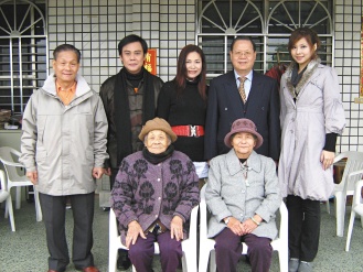 兔子家族三代祖母王陈绒(前排右一)、王莹馨(后排右三)、许庭芳(后排右一)回家拜年。图片来源:联合报