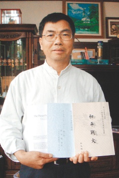 他说,父亲76岁那年因颅内出血无法下田,他鼓励父亲写作;父亲写下逾八万字回忆录,分析当时国际情势,细数受征召离开家乡、海上漂流、异地生活、回台之路等,也悲怜慰安妇等的苦难世相。