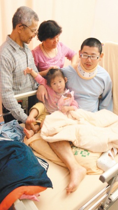 中新网3月3日电 据台湾《联合报》报道,孝子扛家计,却因恶性肿瘤住院经济断炊。新竹县28岁的叶栋耀从高中时天天凌晨4点起床送报,现在则白天当保全员,晚上与身障妻子卖口香糖,养活父母和女儿一家6口,日前却罹患恶性骨肿瘤住院,下半身恐瘫痪,父母老泪纵横“这么孝顺的孩子,怎么这么歹运!”