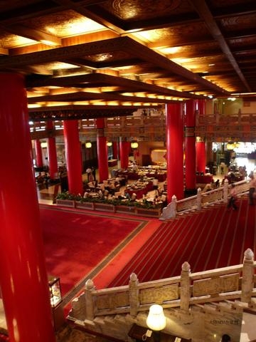 圆山饭店大厅,七彩画梁、丹珠圆柱、金碧辉煌,雄伟壮丽的气势不同凡响,及具特色。