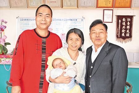 陈清溪(右一)与亡妻所生最小儿子陈茂堂今年已43岁,不仅比陆配妻子陈玉卿大10岁,更比“弟弟”大上42岁。中国时报图
