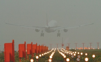 台北桃园机场仍可起降飞机,但马祖机场因能见度过低,暂时关闭,图片来源:台湾《联合报》