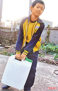 中国台湾网3月29日消息 综合台湾媒体报道,台湾家扶基金会昨表扬24名自强儿童,其中年仅13岁、家住彰化的洪铭楠因家庭变故,须扛起长子重任,不仅要煮饭、洗衣,还要帮行动不便的祖母倒尿桶,过去两年来更每天从外面提20公斤的饮用水回家,看到体重仅40多公斤的洪铭楠提水的情景,连社工员都不禁鼻酸。