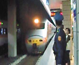 前日晚间台铁1039次自强号列车,司机员林宜贤突血压飙高,紧急求助;缓缓进入台北车站时,月台上有不少旅客,铁路警察早在一旁戒备。图片来源:台湾《联合报》