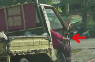 昨早8时许童金雄夫妻载资源回收物,从沙鹿镇中山路住处,缓慢穿越车流众多的中栖路,童金雄仅靠右手控制车辆,左边衣袖还露出车外随风飘动,货车一路上摇摇晃晃,童妻的腿部甚至从取代车门的铁管下穿出,相当危险;货车离去时发出轰隆隆引擎声响,车头严重下陷,车壳几乎快与车轮接触,车辆安全堪虞,童金雄为方便收取回收物品,还不时逆向行驶。