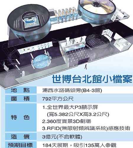 脱宗华说,为建置全世界最大的显示屏,台北市府团队绞尽脑汁,几经申请,上海世博局最后才破例让台北市府团队下挖基地,放入影像控制器,否则显示屏根本放不进去。