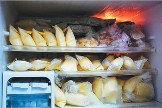 蔡秀珍去年8月生产,产后当母乳妈妈,奶水愈来愈多,一天的奶量扣除小孩吃还有1000毫升,“冰箱冷冻室放到没有地方可放”。孩子喝不完的母奶,她制成母乳冰块、母乳棒冰送亲朋好友,“市面绝对买不到!”