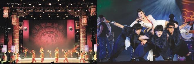 “妈祖之光”晚会昨晚上演,舞台气势磅礡(左);右为大陆知名艺人阿朵的精彩演出。图片来源:台中县大甲镇澜宫