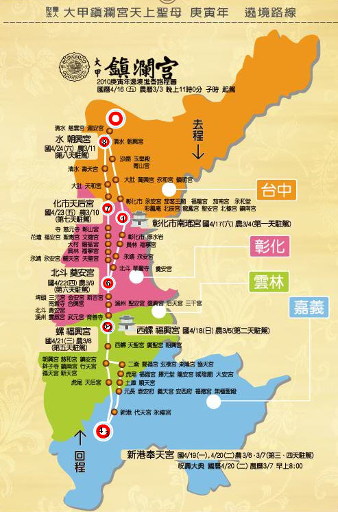 本年度镇澜宫大甲妈祖绕境行程示意图。图片来源:台中县大甲镇澜宫