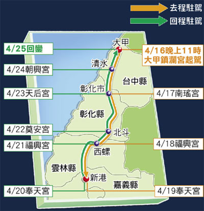 大甲妈祖绕境行程 来源:台湾《苹果日报》
