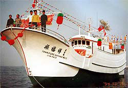 遭印尼渔工挟持的琉球籍渔船振福祥一六号。图片来源:台湾《中国时报》