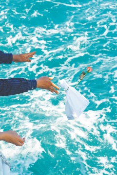 住在台湾宜兰罗东镇的吴鸿涵,去年看到报纸报道海葬,与太太、两个儿子开家庭会议,决定将已过世数十年的祖母、父母、一岁夭折的儿子、姐姐及姐姐的一岁夭折女儿,全部参加今年海葬。吴鸿涵和太太也告知儿子,日后为他们办海葬就好;若想缅怀家人,“看看大海就好”。