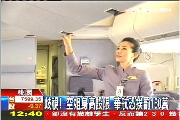 台湾华航说,空服员要做的不只是服务,还得碰触到安全设施,但反观同样也有找空姐的台湾长荣跟台湾复兴,都没对身高设限,台北市劳工局说,就看华航能用什么举证,来说服他们。(中国台湾网 张辰剑)