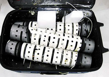 以手提行李走私活鸟,大多数都是装在打洞的水管中。 图片来源:台湾《联合报》