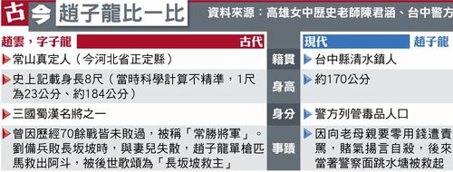 台湾媒体比较“古今赵子龙”。 来源:台湾《苹果日报》