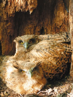据台湾《联合报》报道,台湾最大的猫头鹰黄鱼鸮,行踪一向难掌握,屏科大野生动物保护研究所最近找到一处巢穴,并在即将离巢的两只幼鸟身上装了追踪器,将记录它们神秘的成长过程。