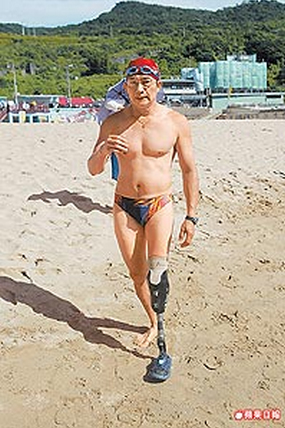 中国台湾网7月5日消息 据台湾《苹果日报》报道,台湾基隆市第七届外木山长泳活动昨逾三千人共襄盛举,参加者年纪从10岁到83岁的老翁,要泳渡4000米的大海,而其中有“肢障铁人”、“独脚铁人”之称的阮锦源,虽然少了一只腿,但他却以58分钟的时间率先抵达终点大武仑沙滩,残而不废、展现惊人生命力的他说:“海浪一直将人往外推,要克服的,除了逆流外,就是自己的意志力。”