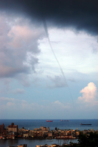 台湾高雄市寿山外海7日清晨出现疑似龙卷风景象。 图片来源:“中央社”