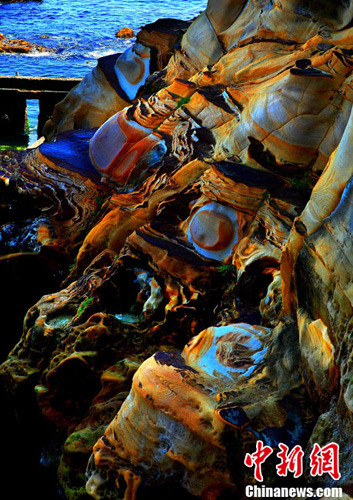 进入7月中下旬的台湾野柳地质公园旅游区游人大增,观光客游趣浓厚的野柳地质公园是一处突出海面的岬角,受海浪侵蚀、岩石风化等作用,形成蜂窝岩、菌状岩、姜状岩、腊烛台等各种各样的奇特景观。中新社记者 宋吉河 摄