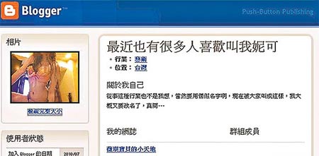 冒名妮可的部落格格主自我介绍写着:“最近也有很多人喜欢叫我妮可。”