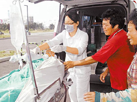 工人张景富被送医时已经没有气息。图片来源:台湾苹果日报