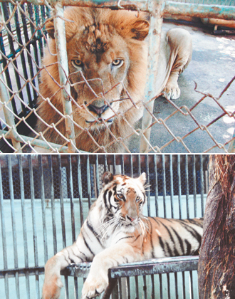 生下狮虎的公狮“狮王”及母虎“美女”。来源:台湾《联合报》