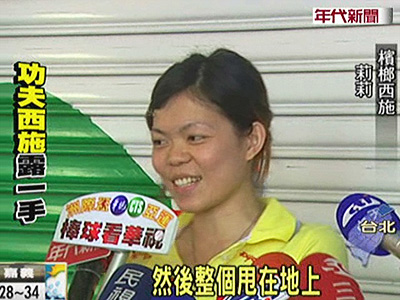 中国台湾网8月18日消息 综合台湾媒体报道,身高不到1米60的槟榔西施王莉莉,前段时间在台北县槟榔店中上班时,碰到比她高一个头、身高170厘米的男子王德裕来抢钱。王莉莉毫不畏惧,竟然一把抓住王德裕左抛右甩,还甩巴掌痛殴,王德裕被打了整整16分钟。警方获报到场,还看到王德裕呆立现场,似乎受到惊吓。