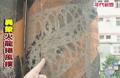 雷击过后,墙上电杆“现龙形”。 图片来源:台湾“今日新闻网”