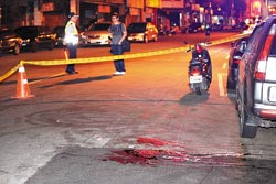 台北县汐止市忠孝东路26日凌晨3时疑似发生情杀命案,现场留下大量血迹。(图片来源:台湾《中国时报》)