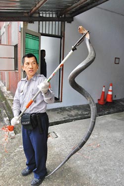 去年在台北县民宅庭院内被捕获长1.6米的眼镜蛇。(图:台湾《中国时报》)