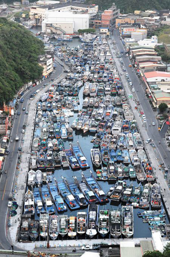 宜兰县南方澳渔港早就被进港避风的船只挤得是水泄不通。来源:台湾《中国时报》