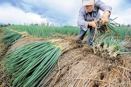 宜兰县的葱农在台风登陆前赶紧抢收,深怕心血泡汤。来源:台湾《中国时报》