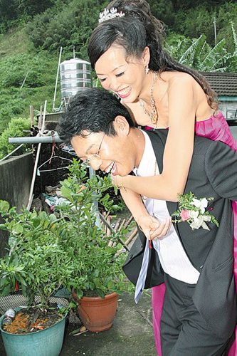 “凡亚比”台风搅局,苗县泰安乡青年傅立仁的喜宴必须商借6处地点,他也要背著新娘到处敬酒,虽辛苦却甜蜜在心头。 来源:台湾《中国时报》