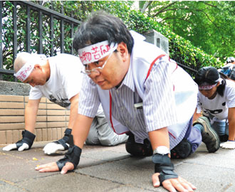 25日开始,民众可能会连续8天在街头见到一群在地上爬行的群众。他们放下人类高度,以动物的视野及角度,亲身体会流浪猫狗在城市内的无助,以此为流浪动物请命,要求当局重视流浪猫狗。图片来源:台湾《联合报》