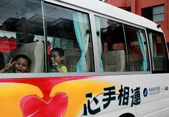 孩子们开心地说,有巴士就不用淋雨上学了。图片来源:台湾“今日新闻网”