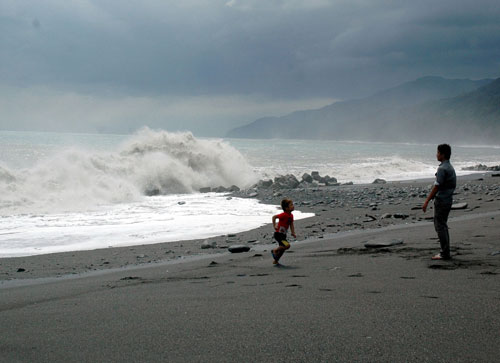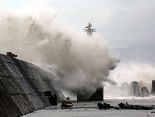 台风“鲇鱼”影响 台东海岸现晴天巨浪(组图)