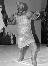 要让兵马俑真的“活”起来,郑奇昌的秘诀是不但化妆、服饰要逼真,还要模拟兵马俑的心态。“而且我会雕塑啊,也学过表演,所以每个细节,都花心思去雕琢!”郑奇昌骄傲地向导报记者介绍,他演的兵马俑,站着不动,即使近距离“研究”十分钟,也辨不出真假。