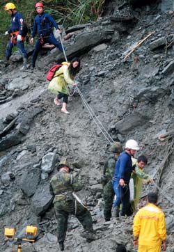 中国台湾网10月23日消息 综合台湾媒体报道,宜兰县灾害应变中心表示,今(23)日凌晨5时30分起,台空勤总队出动直升机分批接出最后53名在苏花公路的受困者,受困于苏花公路的430名游客已全部脱困。另外,19名台湾创意旅行社接待的大陆游客,和1名台湾弘泰旅行社接待的大陆领队,以及2名台籍司机、1名导游仍失联。