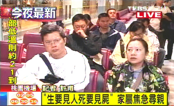 家属一下飞机,先由台湾相关人员协助领取赶办的入台证件,有人神情相当哀伤,表示要见到先生一面,“生要见人、死要见尸。”也有人掩面哭泣,甚至难过到几乎无法行走,家属代表说“希望赶快找到亲人!”