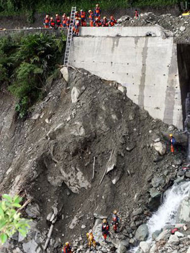 25日下午4时,苏花公路又突然下起一场滂沱大雨,不论是在112公里、114.5公里还是116公里,搜救人员、工程人员和记者急着找安全的地方遮蔽大雨,远离可能的土石坍塌。恶劣的天气中断道路抢通及搜索行动,不仅延宕道路修复,也让等待消息的亲人又要再一夜辗转难眠。