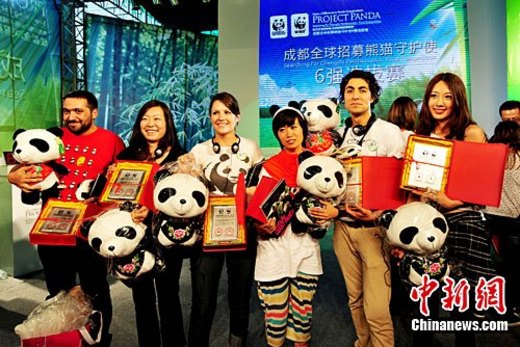 9月29日,成都全球招募“熊猫守护使”,6位选手最终从全球6万名报名者中脱颖而出,来自台湾的王郁文(右一)以176分的高分位居第一。