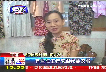时尚寿衣的设计者。 图片来源:台湾TVBS电视台