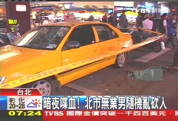 没想到这名男子离开之后,还骑着脚踏车沿路随机砍人,在经过一辆出租车旁时,又对着司机狂砍,另一名经过的路人也遭殃,一个晚上,总共4名无辜人士被他砍伤,其中一名在送医过程中,已经没有生命迹象,目前还在抢救中。