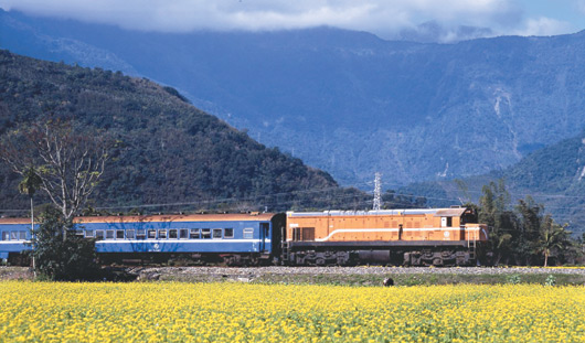 花东线普快车年底走入历史,蓝皮火车驰骋在花东纵谷的美景将成绝响。图片来源:台湾《联合报》