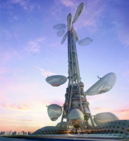 这座塔式建筑名为“飘浮的观景台”(Floating Observatories),将建在台湾第三大城市台中。在最近举行的一场设计大赛中,“飘浮的观景台”设计摘得桂冠。这座建筑的外形好似一棵树,将建造8个飘浮的观景台,能够像树叶一样在“树干”上上下移动。每一个观景台都可充当一部电梯,可搭载80人,采用台湾岛外形。