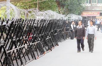 陈水扁2日移往桃园龟山台北监狱执行;狱方上午架起拒马戒备,以防止意外发生。图片来源:台湾《联合晚报》